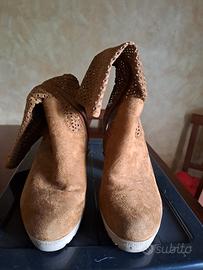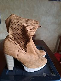 Stivaletti scamosciati color cachi con tacco .Comodi da portare .