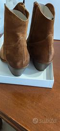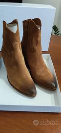 Stivaletti stile texano scamosciati color tabacco. Assolutamente nuovi, mai usati. Vendo perché cambiato idea sul l'abbinamento ed ho acquistato un altro paio di scarpe. Acquistati a € 230,00. Vendo a € 170,00.