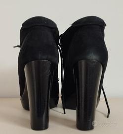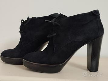 Stivaletti stringati Hogan da donna neri scamosciati con plateau di cm. 2,5 e tacco di 19 cm.