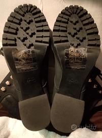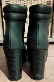 Stivaletti neri alla caviglia in simil camoscio, nuovi e mai indossati. Modello con lacci frontali e occhielli dorati. Tacco largo e stabile, molto comodi. Condizioni perfette.