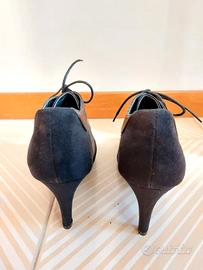 Stivaletti (modello francesine) 'Christin House' con lacci, tacco a spillo. In similpelle e velluto.