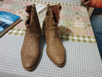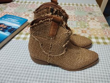 Stivaletti texani donna primavera estate,in rafia ottima qualità. Colore naturale,inserti in cuoio. Marca ZOE.