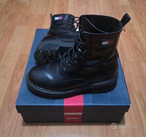 Robusti, moderni e dal carattere deciso: questi stivaletti medi Tommy Jeans in pelle nera sono perfetti per chi cerca stile e praticità in un’unica calzatura. Realizzati in pelle liscia di alta qualità, offrono una finitura lucida e resistente che dona un look elegante ma grintoso.