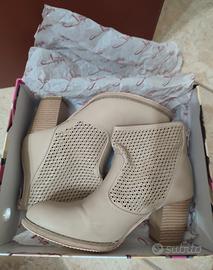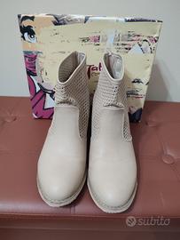 Bellissimi stivaletti, tronchetti traforati donna, colore beige, numero 38, tacco comodo.