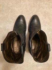 Vendo stivaletti tronchetti bassi, tipo texani camperos. Marca Janet & Janet, vera pelle, colore nero con cuciture bianche, numero 38, tacco 6 cm. Come si può vedere dalle foto sono in ottime condizioni. Purtroppo li devo vendere, perchè ho sbagliato misura, per me sono troppo grandi.