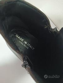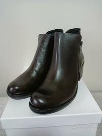 Eleganti stivaletti tronchetto in pelle marrone molto scuro. Un modello versatile e di tendenza per tutto l'anno.