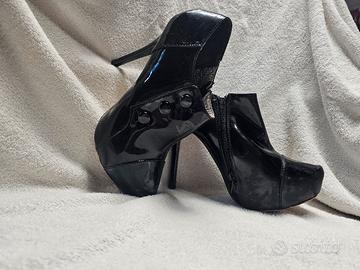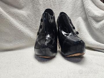 stivaletti tronchetto neri di vernice con tacco a spillo. leggermente rovinata la vernice in alcuni punti