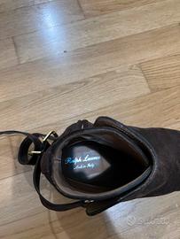 Vendo stivaletti scamosciati da uomo marroni Ralph Lauren Misura 11 (45 europea). Io ho un 44 / 44,5 e mi calzano bene. Con cinturino