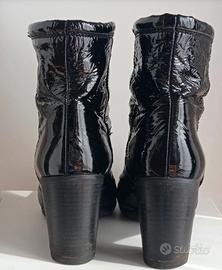 Stivaletti in vernice nera taglia 38 marca Vic Matié con tacco largo alto 7 cm e punta quadrata. Usati ma ben conservati
