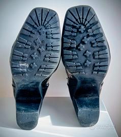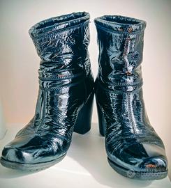 Stivaletti in vernice nera taglia 38 marca Vic Matié con tacco largo alto 7 cm e punta quadrata. Usati ma ben conservati