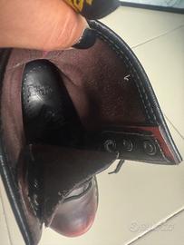 Stivaletti Vintage dr Martens, modello 1460, bordi scanalati, fettuccia posteriore, cuciture gialle e una comoda suola con cuscinetto d’aria. Color Borgogna ed è realizzato in Arcadia, una pelle abrasiva bicolore progettata per ossidarsi con l'usura, rivelando un colore di base sotto. Indossate ma in buone condizioni, tg 37. Originali, con scatola. Increspature come in foto