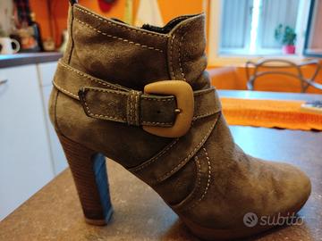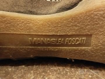 Stivaletto Manas camoscio color oliva, suola in para, usato ma in buone condizioni .una piccola scucitura ,esclusivamente esterna, sul sinistro , come da foto .n. 39 ma calza abbondante , anche se tacco alto, è decisamente comodo!