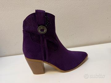 Stivaletto viola con tacco basso da donna Nuovo Numeri rimasti 36-38