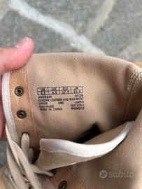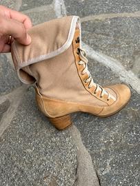 Stivaletti Timberland in colore beige, con tacco e allacciatura. Sono in ottime condizioni. Sono ottimi per la mezza stagione