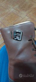 Colore sigaro, realizzato in pelle vera, interno foderato, suola in gomma dentata, fibbia regolante chiusura lacci. Fornito con la scatola originaria.