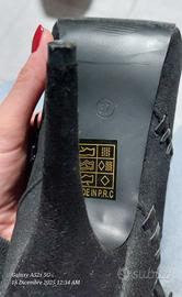 Stivaletto donna nero con tacco circa 12 cm, n°37, con frange, usato solo un paio di volte. Molto eleganti. Con scatola originale un pò piegata su un lato, ma funzionante