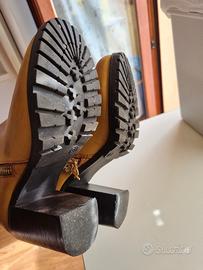 vendo causa inutilizzo stivaletti n⁰ 38 usati ma tenuti bene. color cuoio chiaro in pelle, cerniere laterali, tacco 9 cm . marca XTi