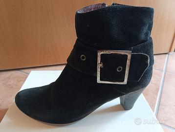 Vendo, per rinnovo guardaroba, paio di stivaletti da donna in pelle crosta di color nero marca COIN, taglia 40, completi della scatola originale.