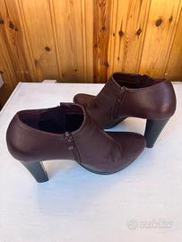 Vendo stivaletto con tacco marca Zuiki, indossata tre volte, in ottimo stato, colore bordeaux, altezza tacco 10 cm, numero 40 con cerniera laterale.