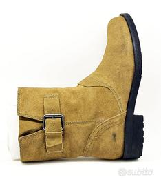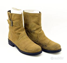 Stivaletti donna Geox New Virna in camoscio marrone, le scarpe sono in ottima condizione con qualche ombratura data la natura della pelle ma non ci sono graffi, strappi o pieghe particolari. La tomaia si presenta quasi nuova e il tacco non ha usura, altezza stivaletto cm.21 e tacco cm. 3,5. Misura 5 ½ EU cm.38 Made in Italy.