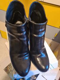 Stivaletti donna in pelle nera numero 37 - tacco cm 9,5 e plateau 1,5.