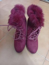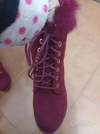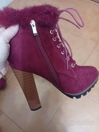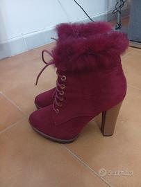 vendo stivaletto donna tacco 12 cn pelo lacci e cerniera colore bordeaux in camoscio misura 38 usati 1 volta senza scatola ma in ottime condizioni prezzo 15€