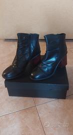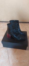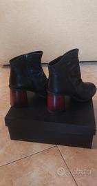 Stivaletto in pelle nero con tacco bordeax taglia 39, come nuovo, usato pochissimo 3/4 volte come evidenziato dalla foto delle suole