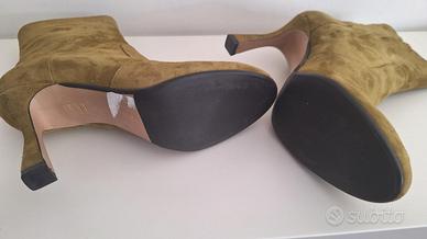 comodi e morbidi stivaletti in pelle, interno ed esterno. Soletta in gomma. Tacco: interno 8cm, esterno 10 cm. Prodotto artigianale in Italia. Eleganti. Mai indossati