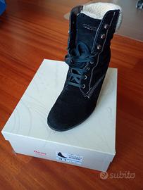 stivaletto invernale stringato da donna, colore nero, modello Bata Premium Collection, misura 41, altezza 24 cm., tacco con zeppa, tomaia scamosciata, imbottitura interna, suola FLX-BATA .