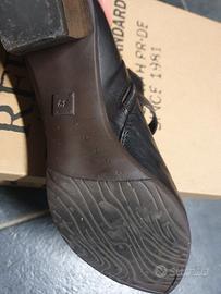 Stivaletto basso - tronchetto colore marrone scuro marca Khrió in vera pelle con fibietta e cerniera laterale. Numero 39, tacco 6 cm.