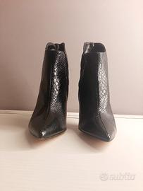 Eleganti stivaletti donna Identità, in ecopelle effetto pitone nero lucido.