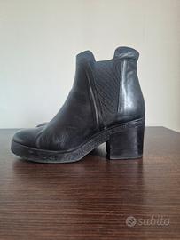 Vendesi stivaletti neri in pelle numero 39, marchio Cinti, con tacco 6 cm. Usato in buone condizioni (vedi dettaglio interno screpolatura).