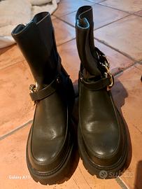 stivaletto elastico laterale con borchie in ecopelle.nuovo mai indossato.num 37 verde militare.