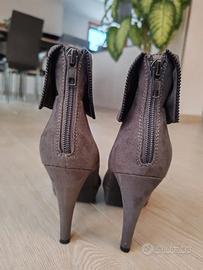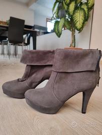 Stivaletto basso scamosciato in ottime condizioni con tacco alto, plateu in pelle scamosciata grigia e zip posteriore. Brand: Ca Venier
