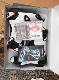Vendo bellissimi stivali da moto da uomo in pelle marca SIDI taglia 46 colore bianco e nero modello MAG-1. Gli stivali sono NUOVI MAI utilizzati, tolti dalla scatola solo per fare le foto. Vendo con scatola originale e libretti/adesivi vari. Tutti i prezzi indicati (180euro) sono COMPRENSIVI di spese di spedizione ma non sono trattabili. Tra i miei annunci trovate altri articoli. Stivale Stivali Stivaletto Stivaletti Scarponcini abbigliamento.