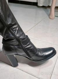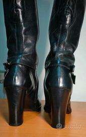 Questo è uno stupendo paio di stivali nero giardini, in vera pelle e cuoio, numero 37 ma se si portano i collant può anche calzare un 38 giusto! Usato pochissimo da come si evince dalle foto. È stata usata una lampada ring molto luminosa per le foto e fa sembrare gli stivali grigi in alcuni punti, effetto che dal vivo non si vede, sono molto lucidi e neri. Stringati dietro al polpaccio, dettaglio molto sexy. Prezzo in negozio 169€ Approfitta dell'occasione e buon divertimento, felice shopping 🥰 Le offerte vengono sempre valutate ☺️