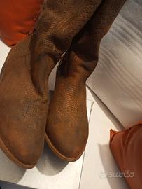stivali al ginocchio maculati, x tutte le stagioni tacco medio , num. 41 usati un giorno.. vedi bene foto