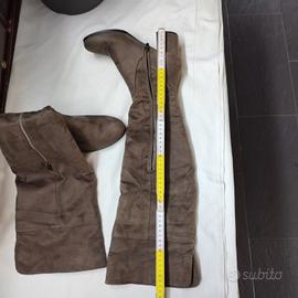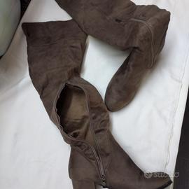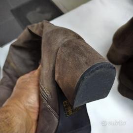Stivali al ginocchio scamosciato marroni nr37, tacco cm5, gambale cm57, usato ma pari al nuovo.