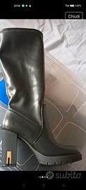 Bellissimi e caldissimo stivali neri alti n. 38 sotto al ginocchio in similpelle. Leggermente felpato all interno e comodo plateau in gomma