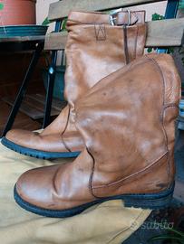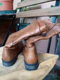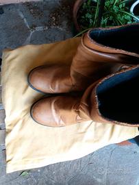 Stivali morbidi in pelle, color cuoio, taglia 36. Punta rotonda, suola in gomma silenziosa. In buono stato, presentano qualche "baffo" scuro sulla tomaia.