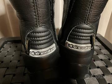La Stella Gran Torino è uno stivale da turismo adatto per tutte le stagioni scolpita con linee pure e disegnata per un piede femminile, realizzati in pelle pieno fiore di prima qualità. La fodera integrata in Gore-Tex® fornisce una protezione testata contro il maltempo, mentre le incorporazioni di protezioni avanzate sono integrate discretamente nello stivale permettendo la sicurezza senza compromettere la linea. Fabbricazione: specificatamente disegnata per le donne. La parte superiore è realizzata in pelle pieno fiore di massima qualità, offrendo comfort, durata e resistenza all’abrasione. Ultima forma anatomica disegnata per una buona forma della pelle superiore e comfort. Fodera integrata in Gore-Tex® impermeabile e traspirante per prestazioni testate in tutte le condizioni climatiche. Sicurezza: Placca integrata sullo stinco, modellata e senza cuciture che forniscono una estensiva protezione contro gli impatti. Protezione della caviglia a doppia densità sostenuta da schiuma nella zona centrale. Protezione in alluminio anodizzato nero nella parte esterna della caviglia. Spazi interni del tallone e delle dita sono graduali sotto la pelle per migliorare l’appoggio e la rigidità nell’area chiave degli impatti. Elementi riflettenti per una visibilità migliore nelle ore notturne. Comfort e comodità: Sistema di acceso laterale facile ed innovatore, con cerniera su una zona elastica e con un’ampia patta in velcro per una regolazione precisa. Suola media bordata in poliammide con modulo iniettato e rinforzi in plastica e TPU nella parte del cambio. Zona flessibile con imbottitura morbida a fisarmonica garantisce comfort durante la guida o mentre camminiamo. Soletta estraibile in schiuma EVA con profilo anatomico. Suola “Lug”, antiscivolo, altamente flessibile che incorpora l’esclusivo composto in gomma di Alpinestars per un’ottima combinazione tra comfort e aderenza.
