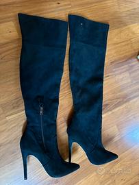 Stivali neri sopra il ginocchio (over-the-knee) di Motivi in camoscio nero