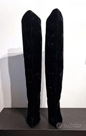 Bellissimo stivale alto in velluto nero, con tacco, by Aldo Castagna