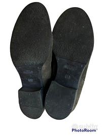 Stivali alti fatti a mano, scamosciati grigio tortora, elastico laterale nero, tacco 3,5 cm. Gambale 30 cm circa.