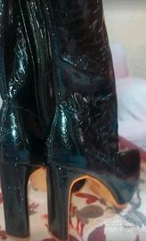 Vendo stivali alti sopra il ginocchio da donna con punta affusolata e tacco alto, neri, con cerniera laterale, stivali in pelle strech con stampa animale e tacco a stiletto, adatti per l'autunno e inverno, si abbinano a qualsiasi outfit, senza cartellino. Mai usati per taglia non adatta. Accetto offerte #stivalidonna #nuovi #donna #pelle