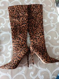 Eleganti stivali alti con stampa leopardata e tacco a spillo. Numero 39. - Stampa leopardata - Tacco a spillo - Punta affilata