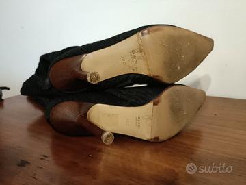 Stivali Gucci in tessuto e risvolto in pelle.Altezza gamba 62 cm Diametro polpaccio 38 cm Tacco 11 cm