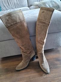 indossati poche volte, vera pelle scamosciata. altezza gambale 35 cm tacco 9 cm