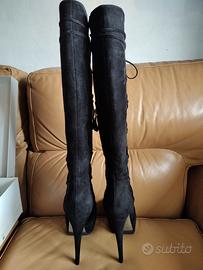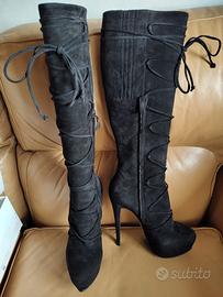 Bellissimi stivali in morbidissimo suede nero, con tacco alto e plateau per una camminata più confortevole.