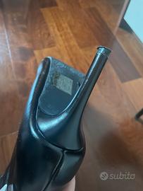 Tacco a spillo da 8 cm, punta affusolata e chiusura laterale con cerniera.